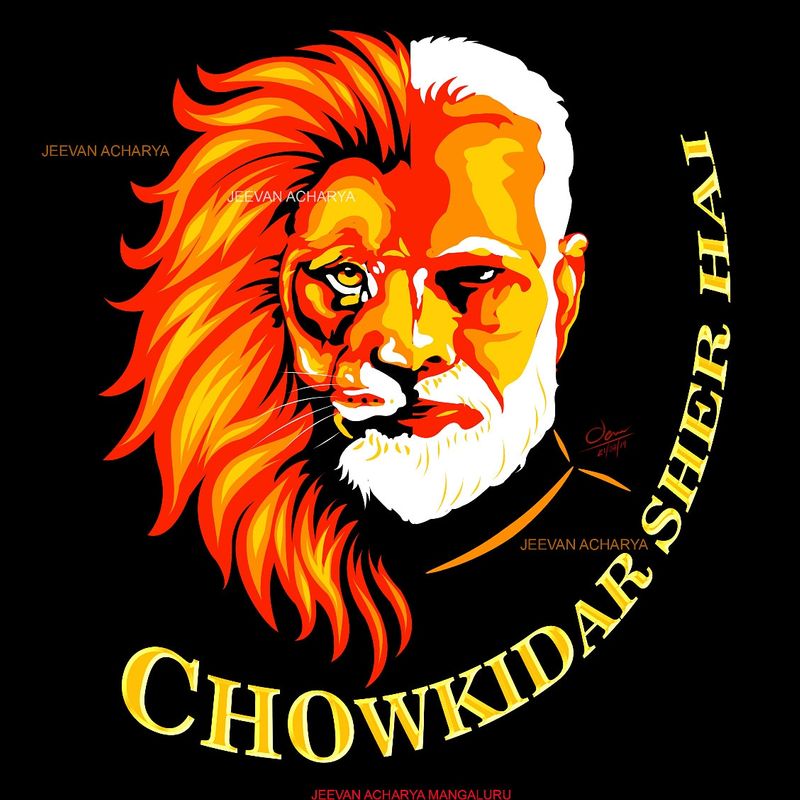 Jeevan Acharya, a Mangaluru-based artist, worked on a portrait of Prime Minister Narendra Modi and compared him to a lion and named it "Chowkidar Sher Hai." The artist's digital vector artwork went viral on social media and grabbed people's attention.