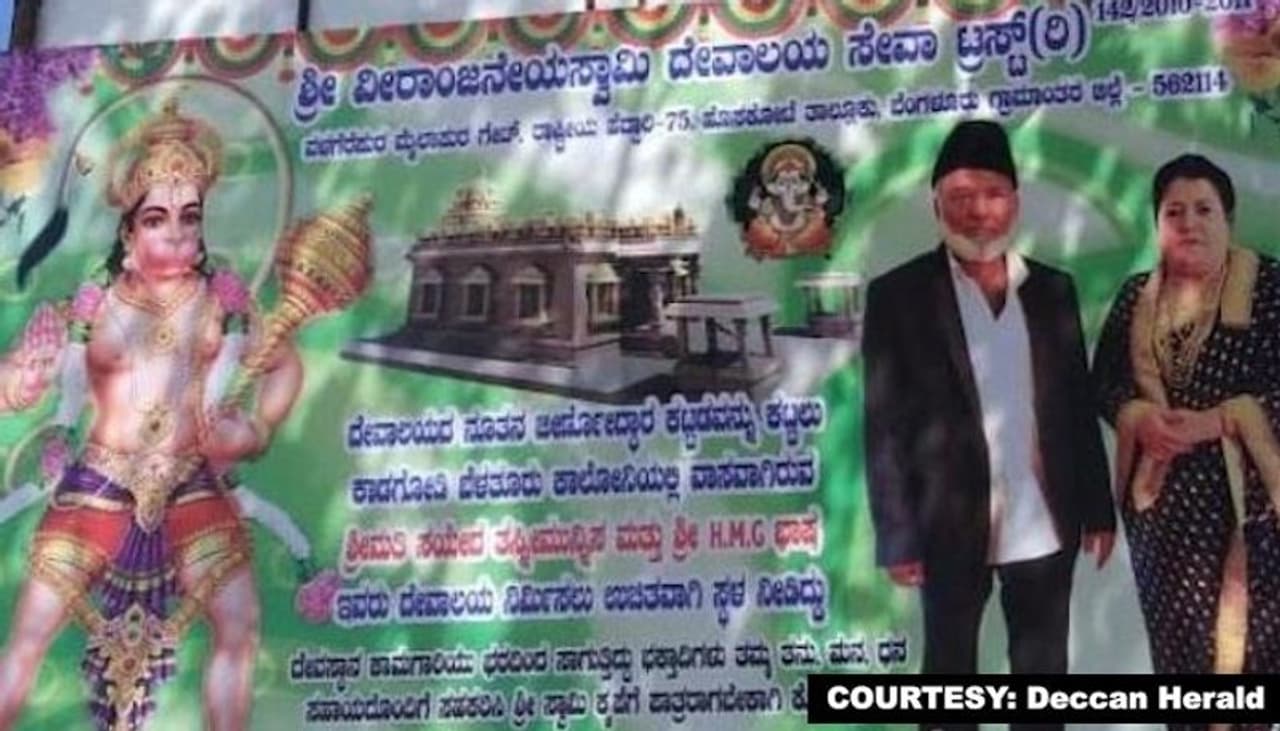 Bengaluru: In a classic case of communal harmony, a Muslim gentleman - HMG Basha – has donated 1650 square feet of his land for the construction of Sri Veeranjaneya Swamy temple in Hosakote, Karnataka.