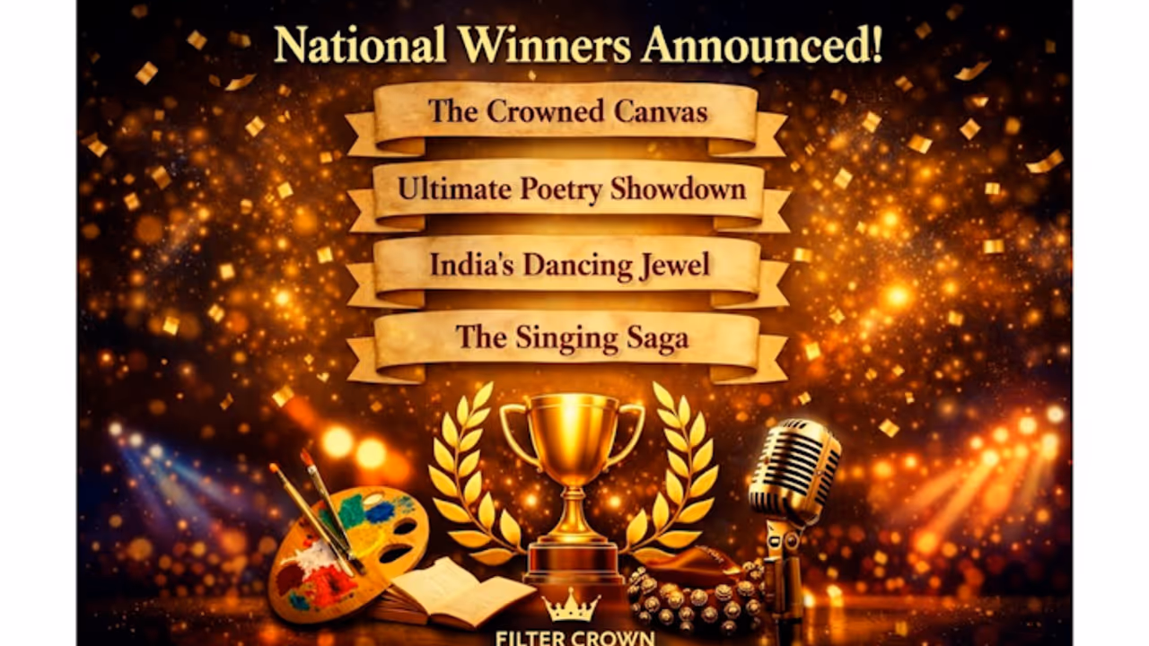 Filter Crown has officially announced the national winners of its flagship multi-disciplinary competitions - The Crowned Canvas - Arts & Painting Challenge, Ultimate Poetry & Creative Writing Showdown, India’s Dancing Jewel, and The Singing Saga. The large-scale creative initiative brought together participants from across India, offering a unified platform for visual artists, writers, dancers, and singers to gain national recognition.