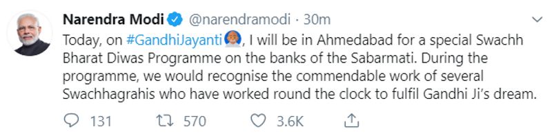 PM Modi will attend a special Swachh Bharat Diwas Programme in Ahmedabad, Gujarat today.