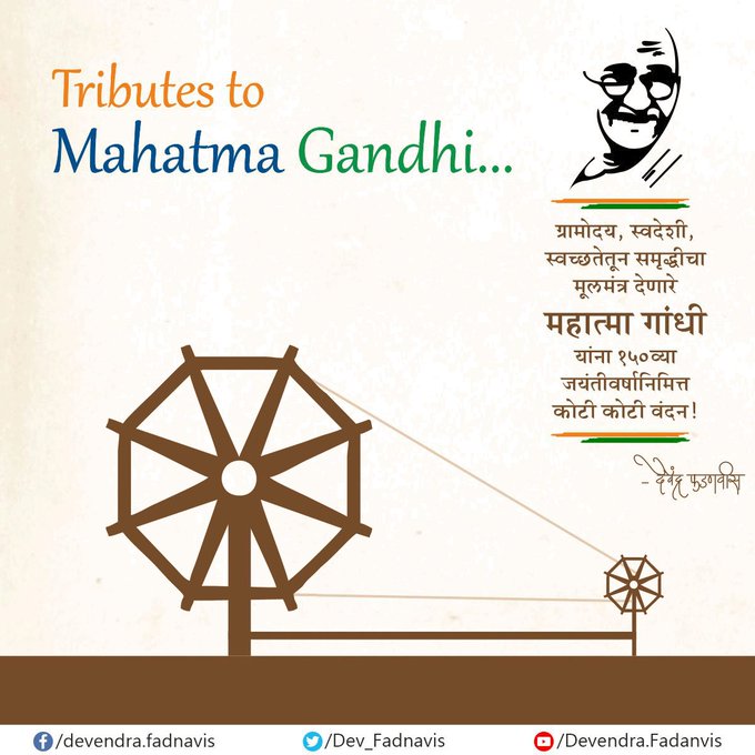 Maharashtra CM remembers Father of the Nation, pays tribute on Twitter. In his tweet,he said,