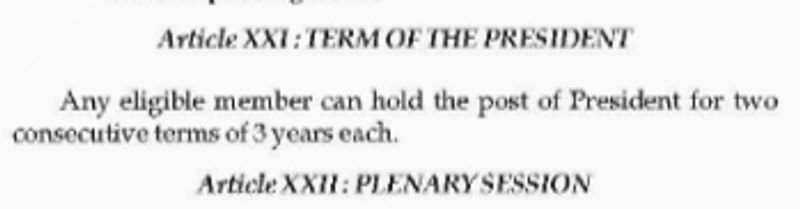 The BJP constitution allows a person to have two consecutive terms of three years each as president of the party. Rather more important is another clause that if a president demits office before his/her term of three years, the rest of the term is not counted in the account of the next chosen president.