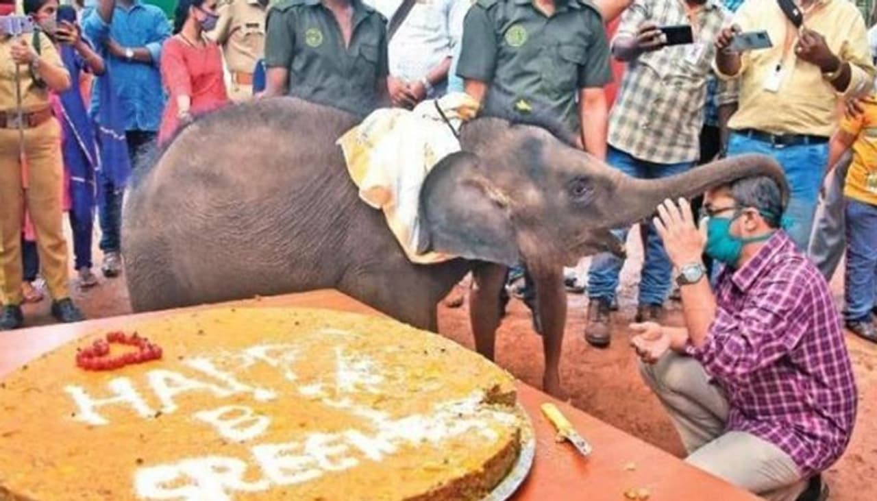 Bengaluru: In a living commentary on man-animal camaraderie, Sreekutty, a one-year-old elephant celebrated her first birthday in Kerala.