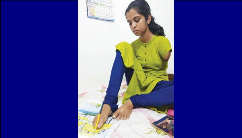 Devika, who has no arms is not only adept in academics, but also possesses the talent of drawing. Her drawings have been exhibited at the Kozhikode Swapnachitra Art Gallery for differently-abled.