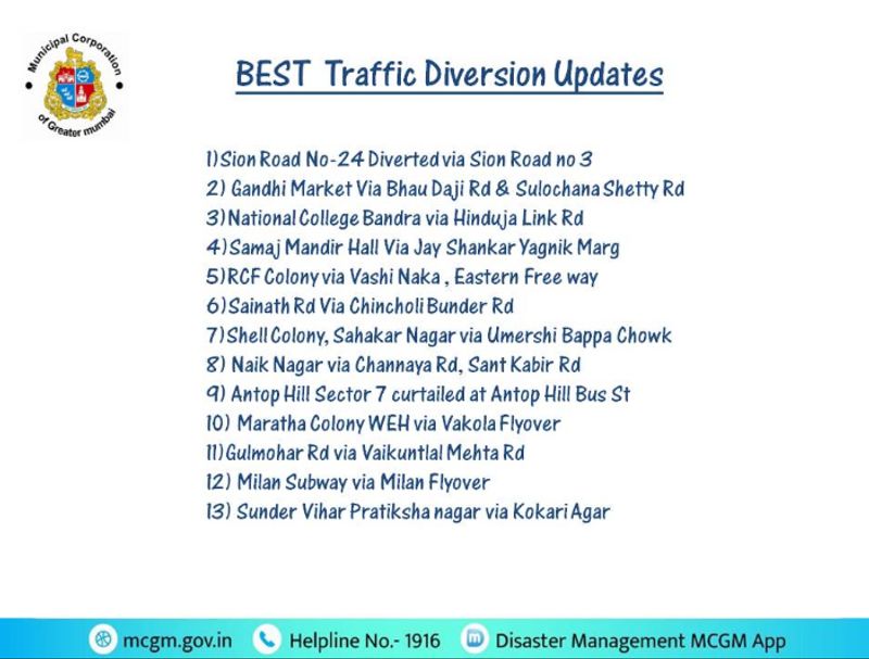 Brihanmumbai Municipal Corporation issues traffic updates in Mumbai