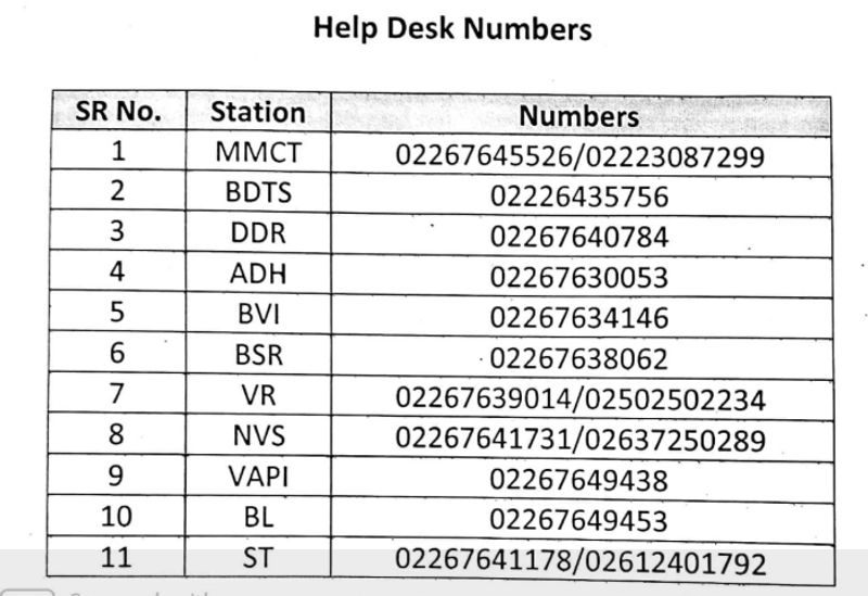Divisional Railway Manager- Mumbai Division of Western Railway has issued a list of help desk numbers