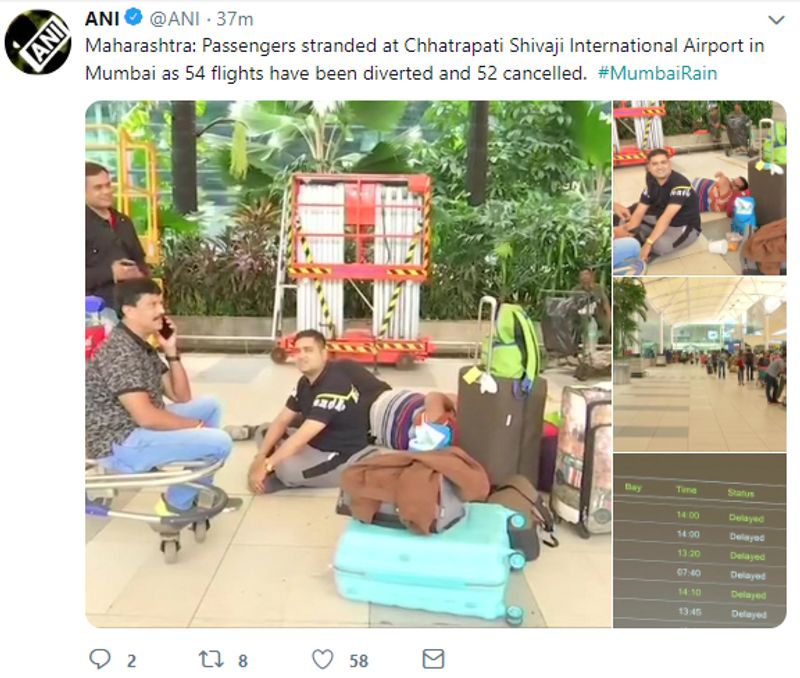 Passengers stranded at Chhatrapati Shivaji International Airport in Mumbai as 54 flights have been diverted while 52 others have been cancelled.