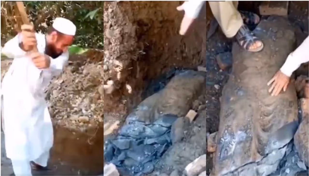 New Delhi: A video surfaced and went viral on social media showing a bearded man who could be heard explaining to his other colleagues, “Look, these are his thighs; this is the belly and this is the naval button (scratching it with a stone).” His observations prompted one of his fellows to ask, “Is this a statue of an Englishman or Hindu?” “Hindu, Hindu, this is Gautam Buddha,” the man replied while crushing the statue with a hammer. In the video, the perpetrators could be seen congratulating one another on their act of destroying a cultural heritage.