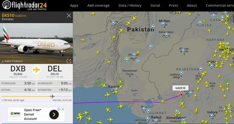 Russian news channel RT has confirmed quoting Pakistani media that a flight originating from Abu Dhabi to reach New Delhi was the first flight to pass through Pakistan airspace in the last three months.