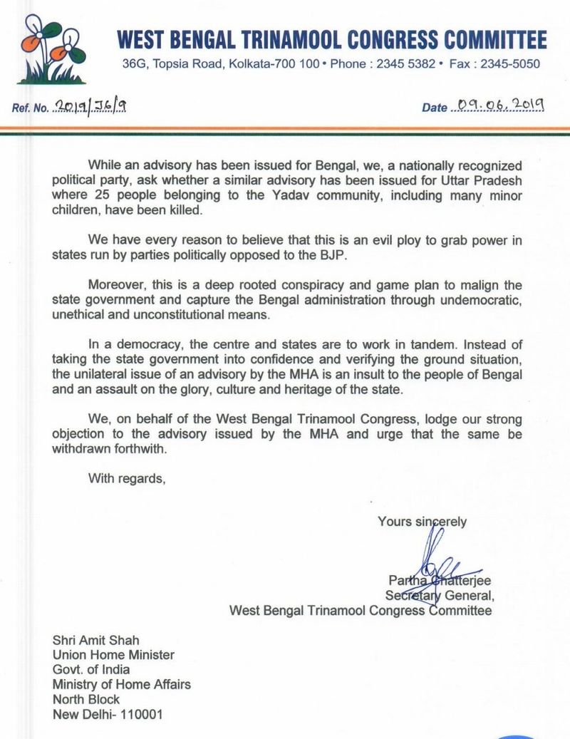 After MHA's advisory to Bengal government on Sunday, in an unusual move, the ruling party sent a two-page-reply to Shah. Communications happen at the government level, not on the party level. But the fact Partha Chatterjee replied to Shah in his capacity of Secretary General of TMC wrote, "While an advisory has been issued for Bengal, we a nationally recognised political party ask whether a similar advisory has been issued for Uttar Pradesh where 25 people belonging to the Yadav community including many minor children, have been killed". He went on to allege, "We have every reason to believe that this is an evil ploy to grab power...". Sources say Shah didn't take this strongly worded unusual outburst kindly.