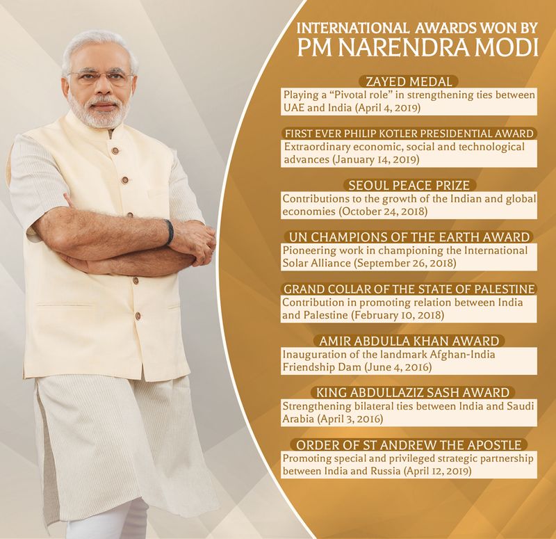 With this award, the Prime Minister has taken his global award tally to seven. Along with a United Nations honour, he has previously been awarded the top honours from UAE, Afghanistan, Saudi Arabia, South Korea and Palestine.