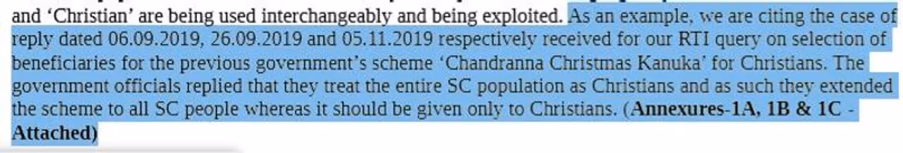 Additionally, it states, “In the absence of mandatory provision to register change of religion, most of the conversions from Hinduism to Christianity are not being neither noticed nor recorded (sic) in any official records. Majority of the said conversions are out of SC Hindu population in the state. The enormity of the problem can be gauged by the fact that the word ‘SC’ and ‘Christian’ are being used interchangeably and being exploited.”