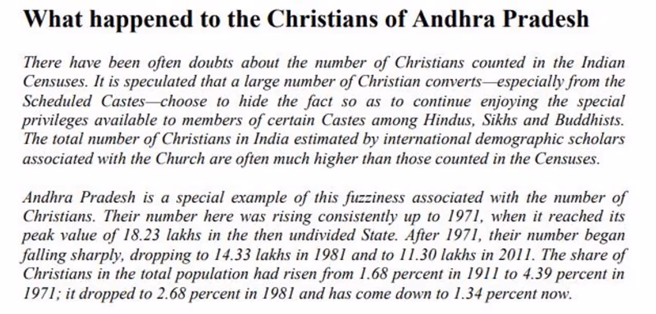 The letter also draws attention to the report titled “What happened to the Christians of Andhra Pradesh?” prepared by Centre for Policy Studies, New Delhi