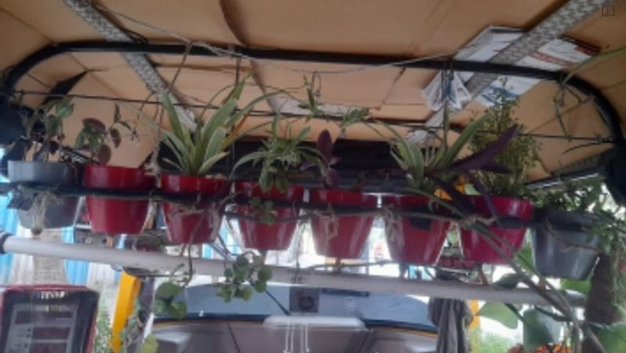 Ganesh Nanekar and his wife had a habit of planting saplings. Initially they grew plants in a bottle and placed them in the rickshaw. Encouraged by the positive response from passengers, Ganesh decided to install more pots in the rickshaw. Gradually, his vehicle was adorned by several plants.