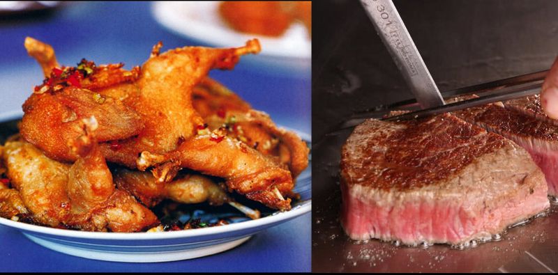 Wagyu beef is a rich-tasting, expensive type of Japanese meat that has high levels of unsaturated fats. And, spicy fried quail is a delicacy that has been enjoyed since time immemorial.