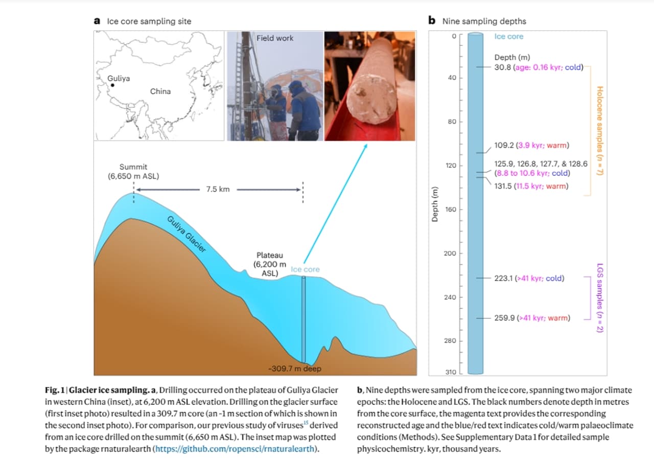 The viruses were found in an ice core extracted from the Guliya Glacier on the Tibetan Plateau, a region straddling Central, South, and East Asia. The core, which stretches 1,000 feet in length, contained viruses dating back as far as 41,000 years. This period spans several significant climatic transitions, from cold glacial phases to warmer interglacial periods.