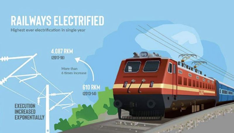 New electric locomotives need electrified rail lines. The government has ensured a record breaking 4,087 Rkm of tracks are electrified just in 2017-18 year itself. Can you imagine there were about 4,943 unmanned level crossings which had to be eliminated and proper safety features installed. The number of railway accidents caused due to unmanned level crossings in the year 2009-10 was 65. 48 accidents were reported in 2010-2011, 54 in 2011-2012, 53 in 2012-2013, 47 in 2013-2014, 50 in 2014-2015, 29 in 2015-2016, 20 in 2016-2017, 10 in 2017-2018, three in 2018-2019.