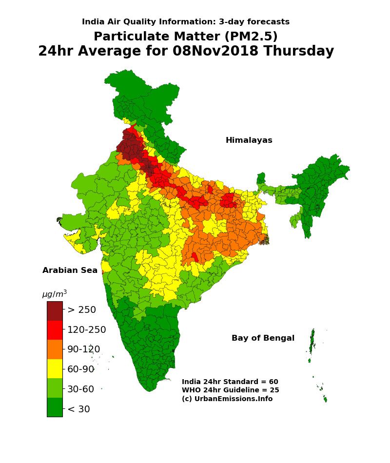 The SAFAR forecast "bad" air quality Thursday even though partially toxic crackers were burst as compared to 2017. It also said the pollution levels would peak between 11 am and 3 am on Wednesday and Thursday.