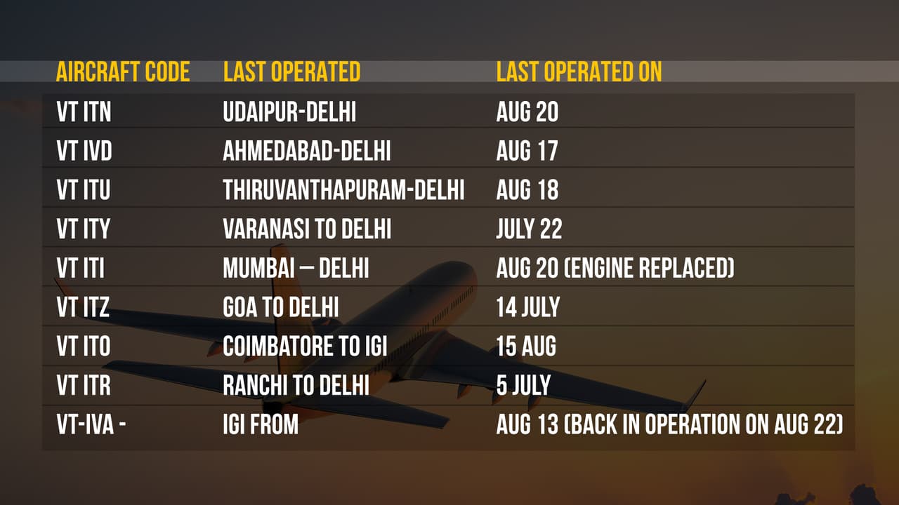 According to the sources, out of the nine IndiGo Neos that were grounded at the IGI Airport on August 20, two were pressed back into service after a change of engine on August 22 and 23.