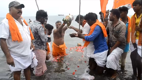 Members of Rameswaram Shiv Sena, Tamil Nadu, paid floral tributes to the victims of the train accident in Amritsar. The fatal train accident killed more than 50 people, while Dusshera festivities were on at Chaura Bazar near the railway tracks in Amritsar, Punjab. Shiv Sena held special prayers for the people, who died in the train tragedy. They offered floral tributes near the sea, while the priest chanted slogans of Jai Sri Ram.