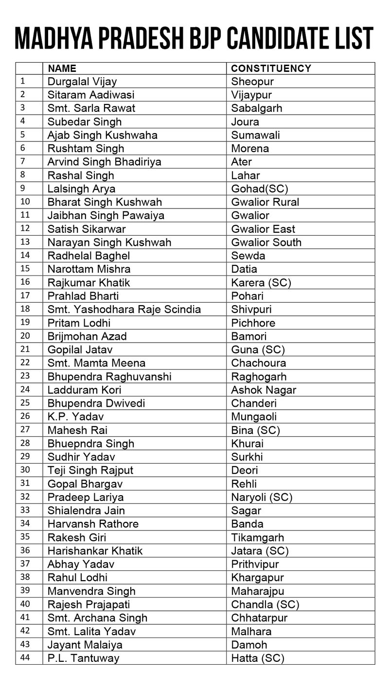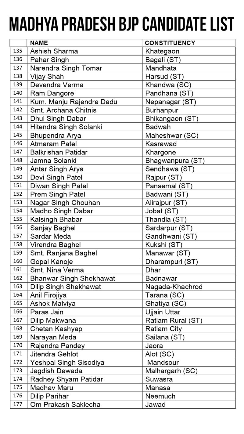 In Madhya Pradesh, which has 230 assembly seats, the all-important second list was decided in the party’s central election committee meeting attended by Prime Minister Narendra Modi, party president Amit Shah