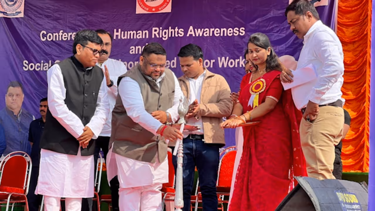 The conference focused on strengthening awareness around labour rights, human dignity, and access to social security for workers outside formal employment structures. It was jointly organised by the Bharatiya Railway Mall Godam Shramik Union (BRMGSU) and the Bharatiya Labour Union, with support from SGT University and Nomo Foundation. The objective was to create a collective platform where workers could better understand labour laws, human rights provisions, and welfare schemes meant for their protection.