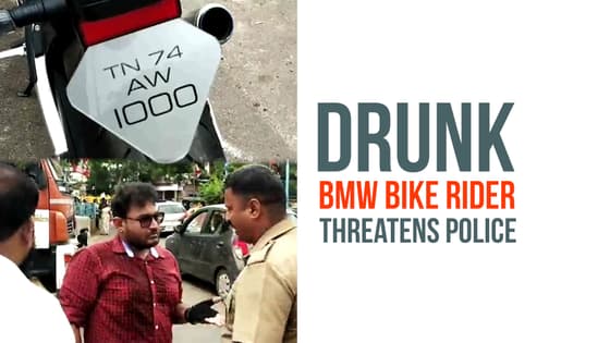A drunken man riding a BMW bike was arrested by police for threatening the officers in Chennai. Watch the video here.