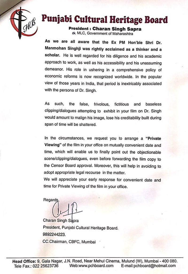 Tambe alleged the trailer of the movie betrayed that facts regarding ex-PM Singh and UPA chairperson Sonia Gandhi had been twisted and that it needs to be created with the party before its formal launch.