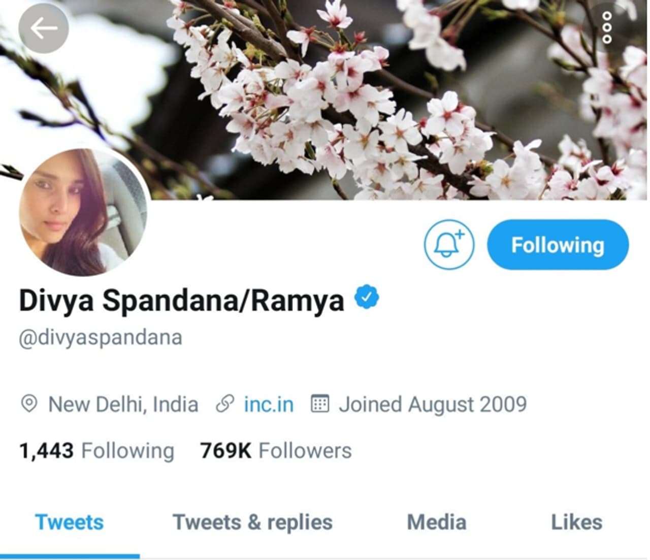 New Delhi: Has Congress’s social media head Divya Spandana been sacked by the party? The suspicion arose on Wednesday due to a three-day long 'hiatus' on Twitter and a missing profile description. Also known as Ramya, Divya had erased her political identity as the chief of the Congress's social media wing from her Twitter profile.