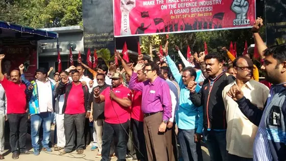 The employees union of CQAL staged a protest outside their factory in Bengaluru, alleging the Central government of dismantling defence industry by imposing 'corporate culture'