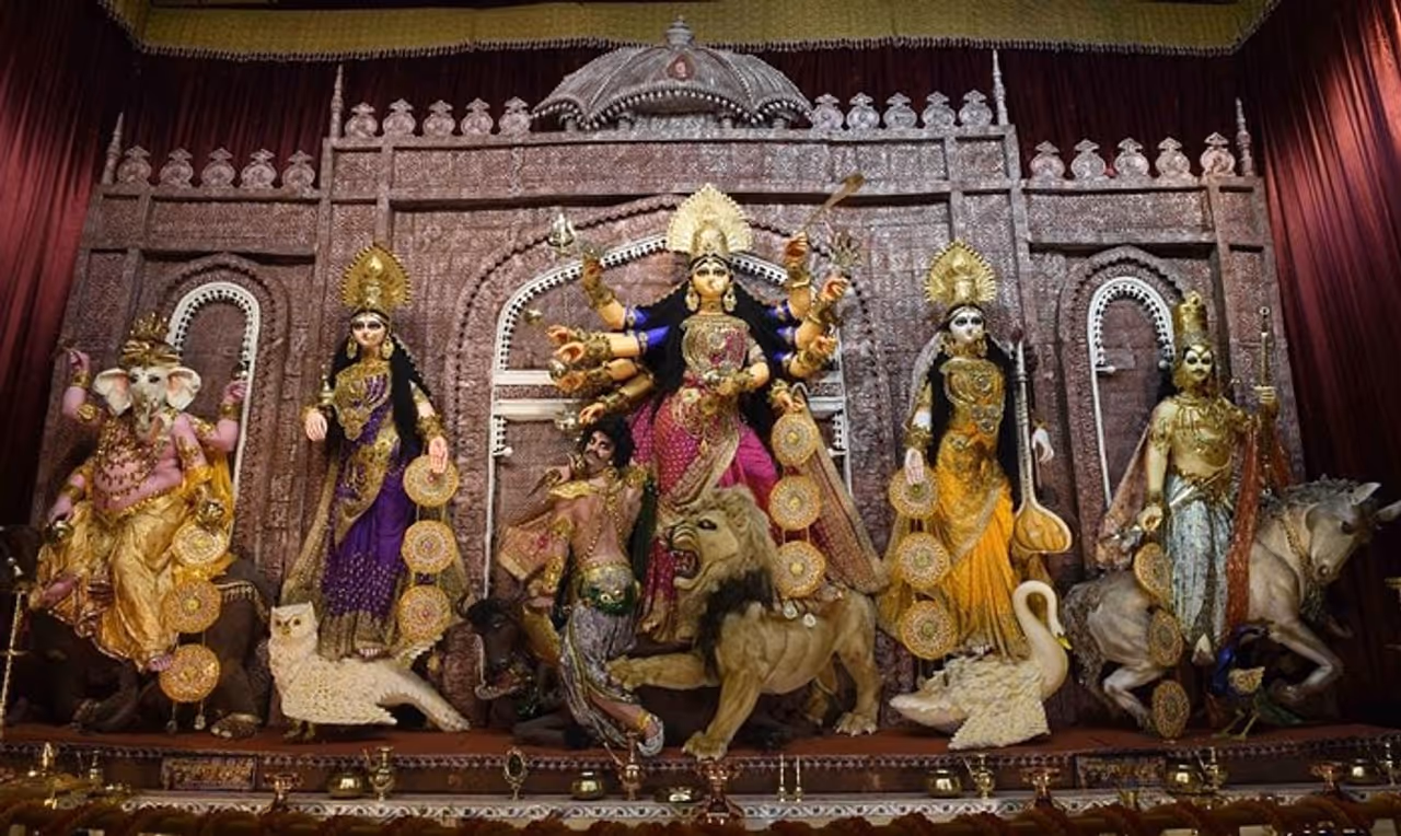 In Durga Puja, Goddess Durga is worshipped along with gods that, according to the Bengali tradition, constitute her entire family: Ganesha, Lakshmi, Saraswati, Kartikeya.