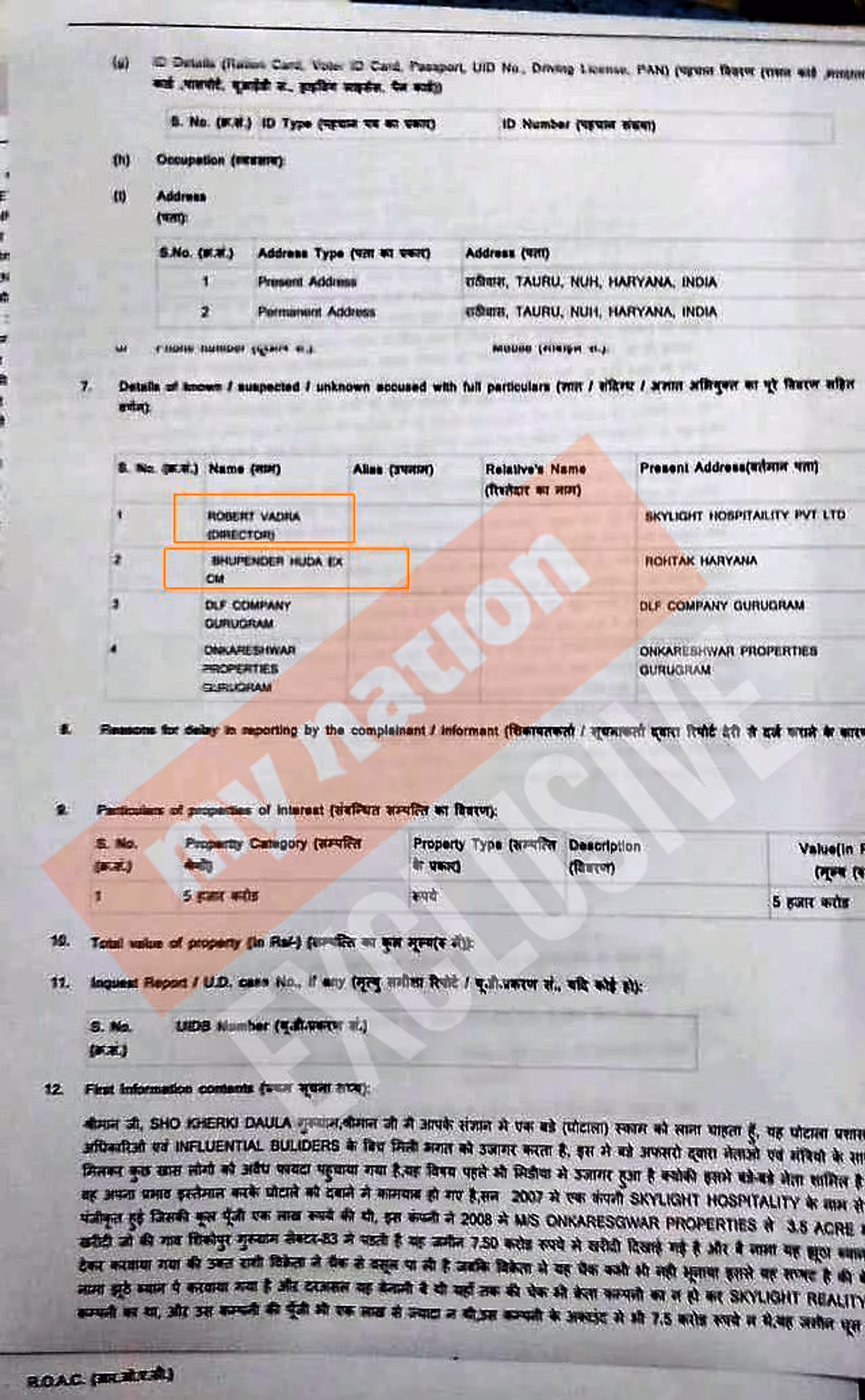 FIR registered against Robert Vadra on SaturdayFormer chief minister Bhupinder Singh Hooda has also been named in the FIR.MyNation got the first access on the FIR copy