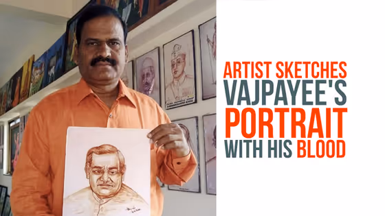 Government school teacher paints late PM Atal Bihari Vajpayee's portrait with his blood in Bagalkot, Karnataka. Displays the painting at Sangamesh arts gallery