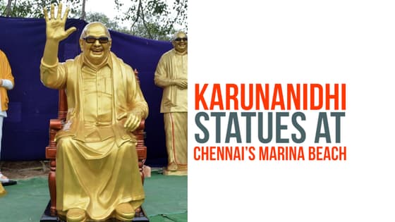 Karunanidhi statues at Chennai’s Marina Beach