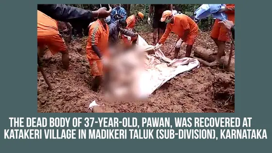 NDRF personnel along with some local groups ploughed a piece of land at Madikeri taluk (sub-division), Kodagu, Karnataka, and recovered the dead body of a 37-year-old man named Pawan. Disturbing visuals have surfaced from the site.