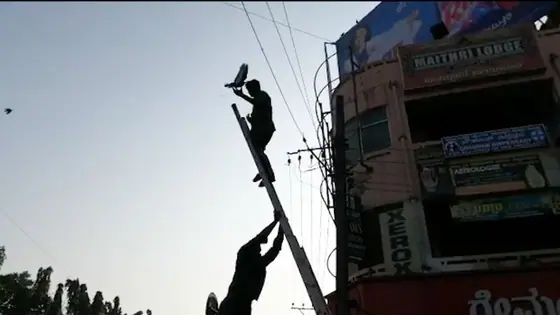 As soon as the public spotted the debilitated pigeon sending out pleas of helplessness, they informed the MESCOM officials. Immediately, the officials deputed Rakshith, a lineman who dared to dangle with the high-voltage line, only to rescue the poor bird. As the bird was freed and flew away, the other pigeons who were watching the rescue procedure, escorted the entangled bird.