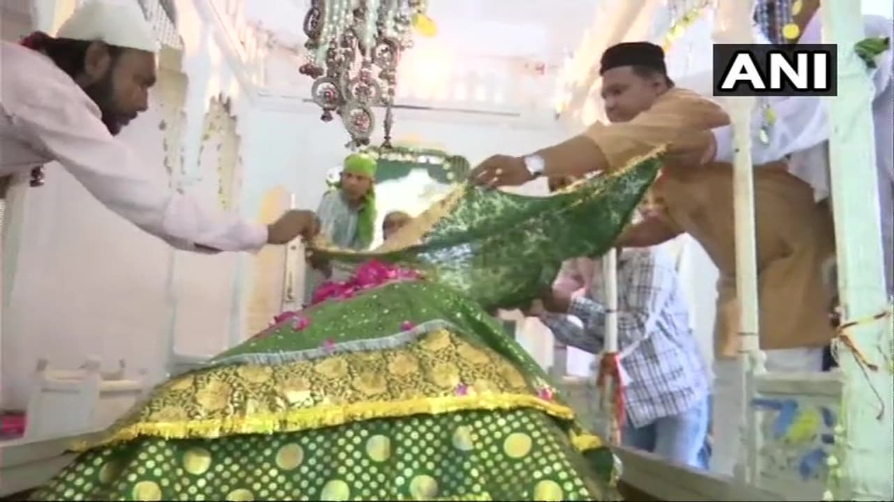 Madhya Pradesh Youth Congress leader Shakir Khan offers chadar at a dargah in Gwalior, praying for Vajpayee.