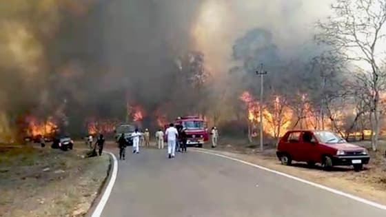 Hundreds of forest department officials along with local volunteers tried to douse the fire. However, dry grass and strong winds have aided the fire in spreading towards the roads on National Highway 67.