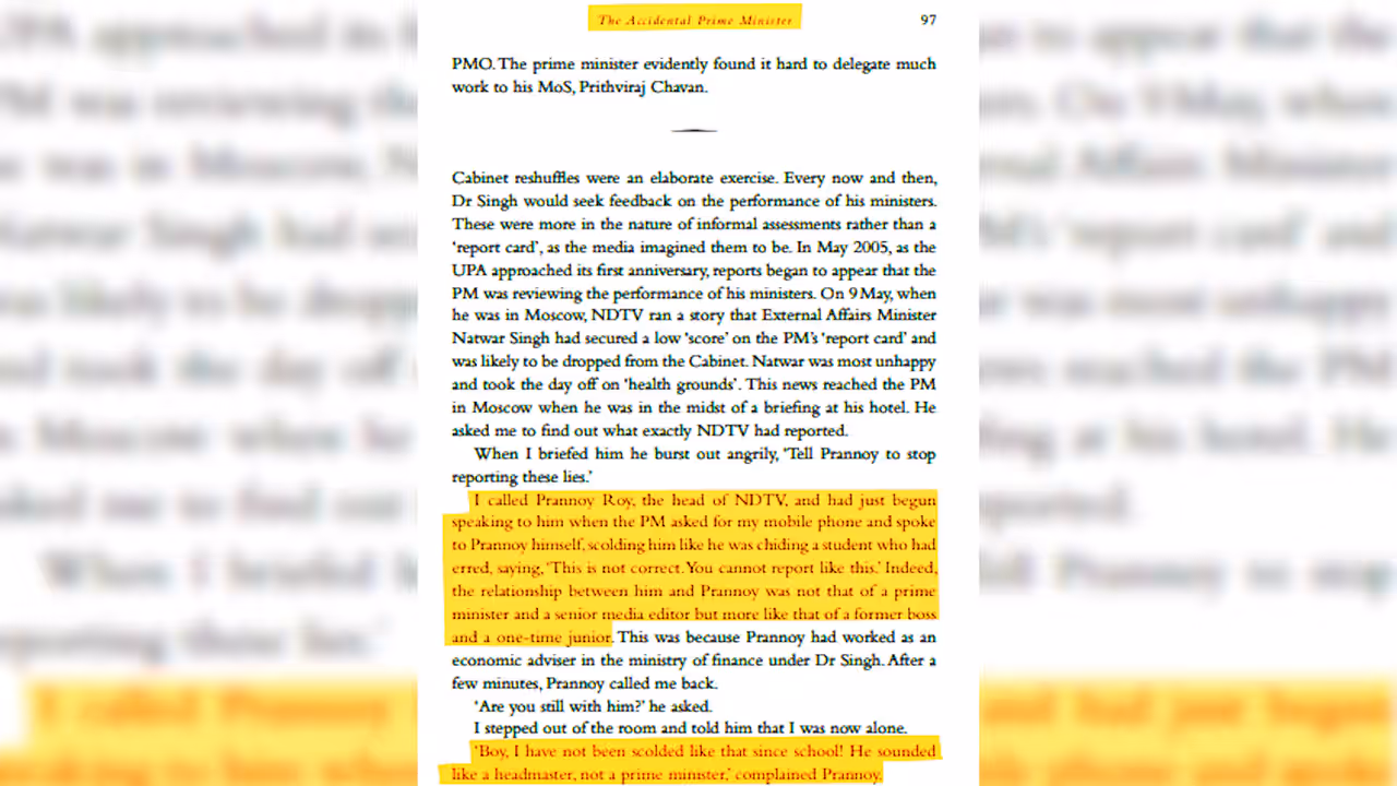 Singh wrote that he came to understand the context of that incident when Manmohan Singh’s media advisor Sanjay Baru released his book, The Accidental Prime Minister. “Nearly nine years later, in 2014 when Manmohan Singh’s media advisor Sanjay Baru’s book hit the stands, I came to know why Roy had done so. On page number 97, Baru said that hitherto the most liberal and weakest prime minister Manmohan Singh had called up NDTV’s powerful journalist-owner Dr Pranoy Roy and had reprimanded him. By complying with the 'order', what journalist-turned-businessman Prannoy Roy did can be called anything but journalism.”