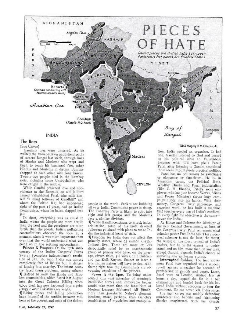 The magazine printed a map, as part of the cover story, which was completely different from the one we see today. This map was divided into many parts. At that time there were more than 550 princely states. The British had lost interest in India, but they wanted to divide the country into many parts before leaving.