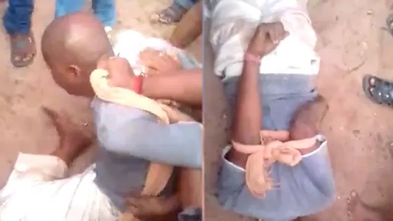 The victim was hit on the groin and was killed on the spot, before cops arrived at the scene where he was tied up for trying to steal.