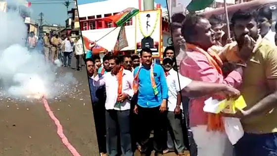 In Kolar, sweets were distributed by jubilant BJP workers. They also held the national flag with pride and held a procession and later burst crackers.