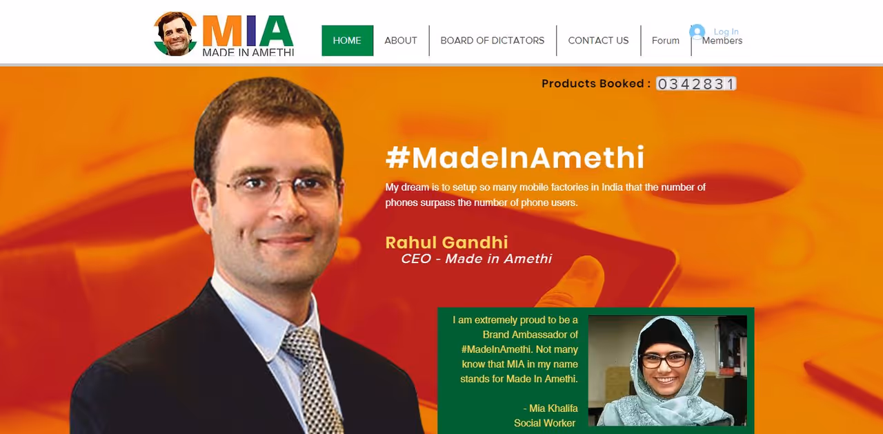 That’s how the website describes ‘Made in Amethi’. It says, “This is the drama project by our young and bachelor CEO Shri Rahul Gandhi from the famous house of Gandhis, also known as Thugs of Hindustan. We aim to sell various imaginary products that our CEO Shri Rahul Gandhi launches at his rallies. In case the website is down due to heavy traffic, please bear with us like (sic) we do with Rahul ji.”
