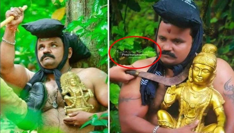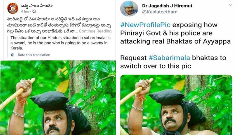 The photoshopped picture showed police stamping on an Ayyappa devotee, who had his Irumudi tied to his head holding an Ayyappa idol in his hand.