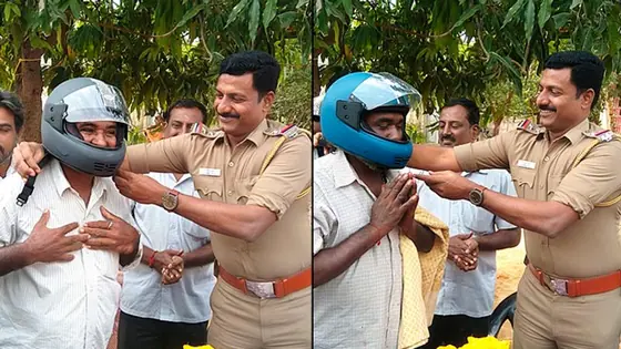 The police inspector visited the Narikurava community in Vadalur during the festival of Pongal in January. He found that they were not economically stable and wanted to do help them in some way. He held talks with local helmet shops and bought 100 helmets at his own expense and distributed them to the people.