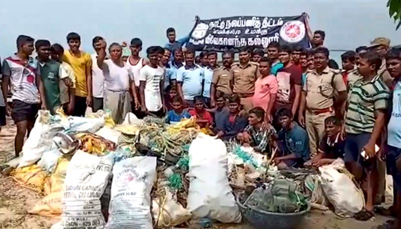 The students of Vivekananda College in Ramanathapuram began to clear the plastic debris which was accumulated in Krusadai Island as part of Republic Day celebrations