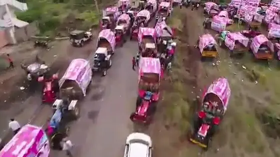 The venue has huge hoardings of Telanagana CM K Chandrasekhar Rao as Lord Rama and banners in pink are present throughout the venu that is expected to be thronged by 25 lakh people. [VIDEO]