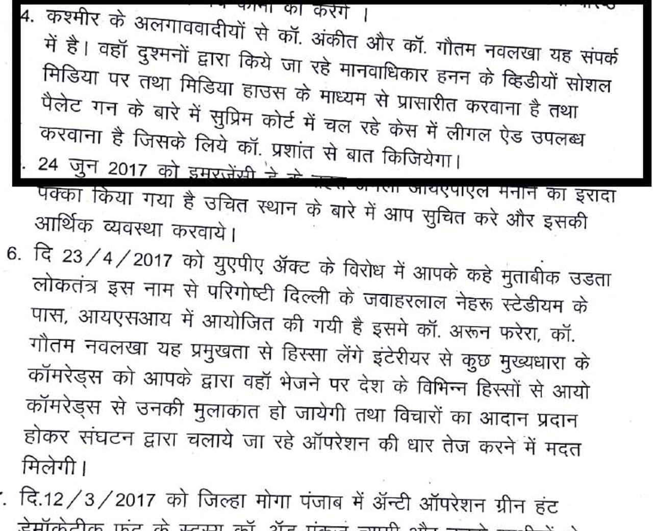 In this paragraph of the alleged letter by Bharadwaj, Gautam Navlakha, another urban naxal arrested by Pune Police on August 28, is named. According to the letter, Navlakha was in touch with those fighting the Indian state in Kashmir.