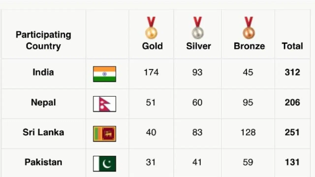 Nepal concluded the tournament at the second position in the medal tally with a total of 206 medals. Sri Lanka and Pakistan are on the third and fourth spots respectively.
