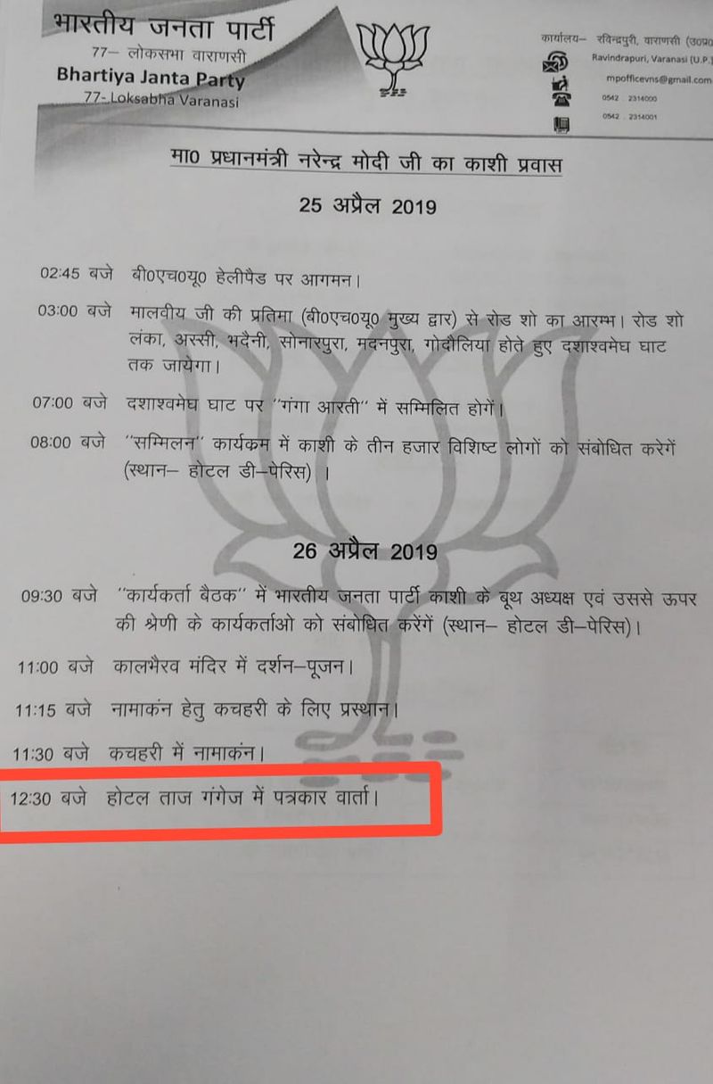 A buzz was created after a purported copy of PM Modi's schedule was leaked that said, PM Modi will interact with the media on April 26 at 12.30 pm at Taj Ganges in Varanasi.